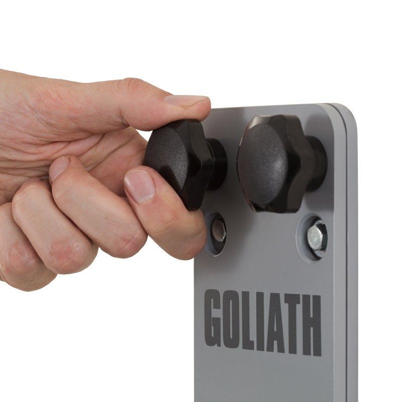 GOLIATH WALL puede ser montado y desmontado rápidamente gracias a 4 pomos para aprovechar al máximo el espacio.